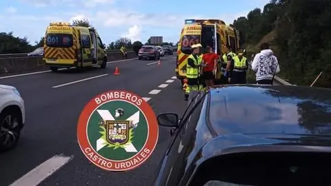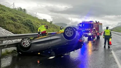 Herida una menor tras volcar un vehículo en la autovía a la altura de Santiurde