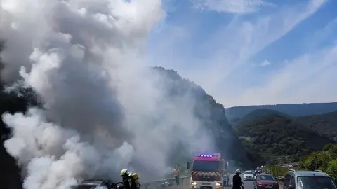 Cantabria Incendio de un vehículo en la autovía A67 a su paso por Barreda Eva Herrera 21/sept/22 20:47