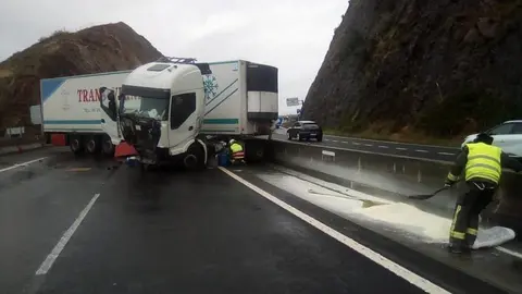 Retenciones en la autovía A8 por el accidente de un camión a su paso por Solares