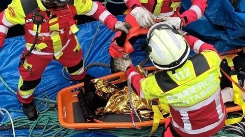 Costa Central Rescatados los dos pescadores de un barco de Santander hundido frente a Miengo tras incendiarse Marta Alonso 01/sept/23 15:08