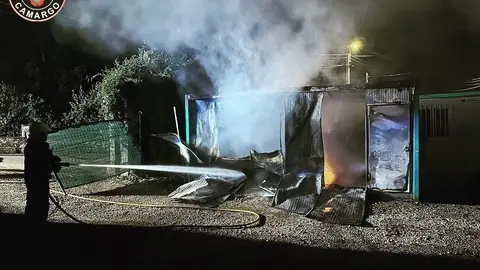 Costa Central Los bomberos extinguen un incendio de una caseta de obra en Camargo Marta Alonso 16/jul/23 10:41