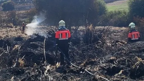 Asón - Agüera Bomberos sofocan un incendio de vegetación junto a las vías del tren en Gibaja Eva Herrera 10/oct/23 20:40