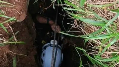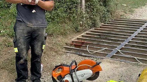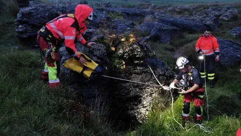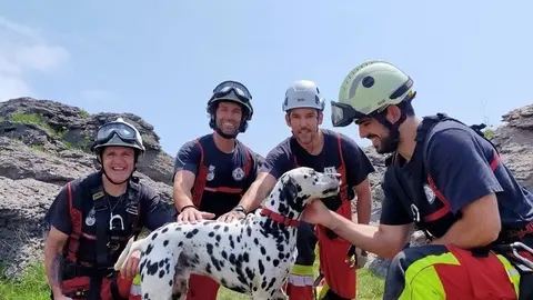 Bomberos rescatan a un perro caído en un zanja de 12 metros de profundidad en Santiurde de Toranzo