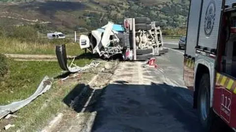 Cantabria Dos heridos en el choque de un coche y un camión en la A-67, a la altura de Lantueno Eva Herrera 07/ago/25 17:35