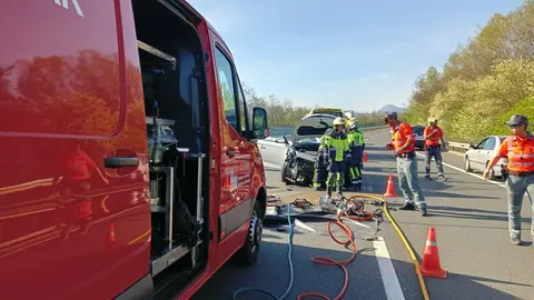 Asón - Agüera Un conductor queda atrapado en su coche tras chocar contra un garaje en la carretera de Marrón Marta Alonso 10/may/23 15:08