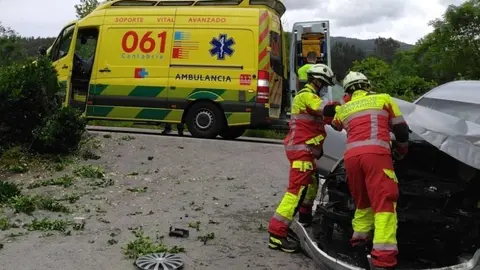 Trasmiera Tres heridos leves tras salirse un coche de la carretera en Bareyo Eva Herrera 28/jul/23 10:15