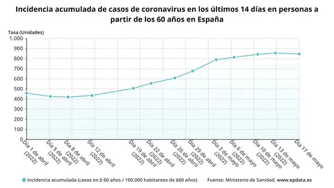 España España suma 58.839 casos y 305 muertes, mientras la incidencia en mayores de 60 sube dos puntos Marta Alonso 20/may/22 19:22