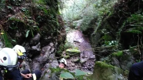 Rescatado un perro de caza atrapado en el 'Regato Juanas', en Santiurde de Toranzo