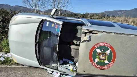 Un coche se sale de la vía y vuelca en Liendo y a la llegada de efectivos no hay nadie dentro