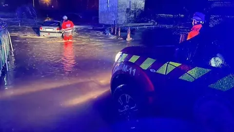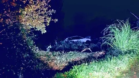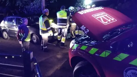 Un conductor queda atrapado en su coche tras chocar contra un garaje en la carretera de Marrón