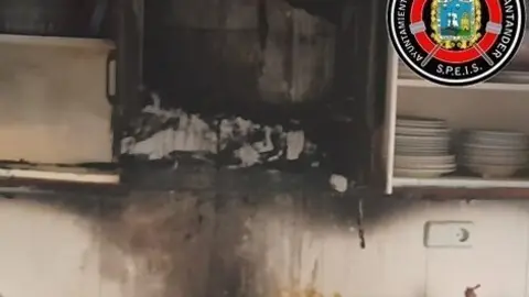 Los bomberos de Santander extinguen un incendio en la cocina de una vivienda de Marina de Cudeyo