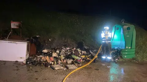 Bomberos extinguen el incendio de varios contenedores y muebles en Comillas