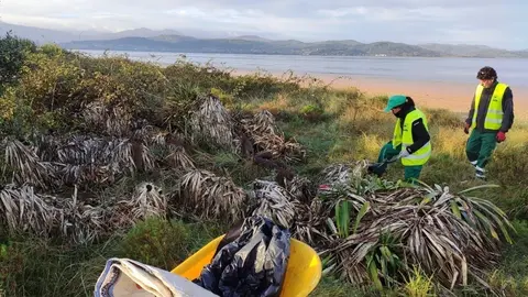 Retiradas más de 50 sacas de la planta invasora 'onagra' de las dunas de Marzán en Cuchía