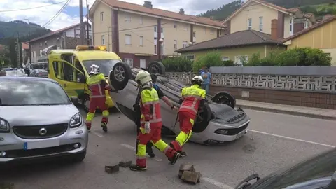 Una mujer herida en una colisión con vuelco en la retención del accidente de la A8 en Ontón