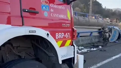 Un herido leve en el vuelco de un coche al chocar contra otro en la A-8 en Mazcuerras