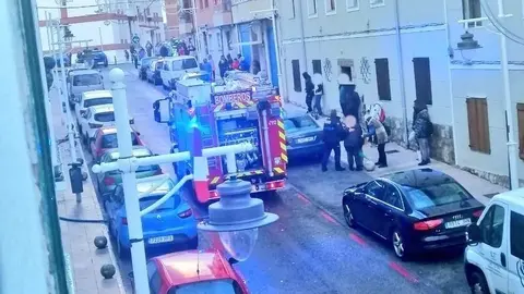 Una espectacular salida de vía en Matamorosa deja un vehículo sobre dos ruedas entre un muro y un poste