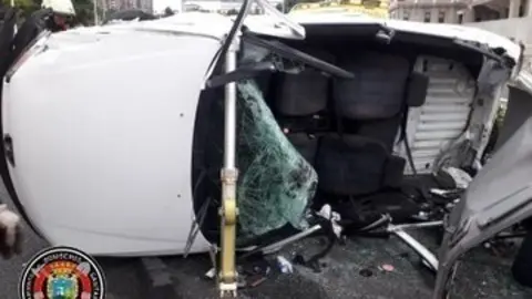 Dos heridos tras caer un coche desde una altura de cuatro metros en San Vicente