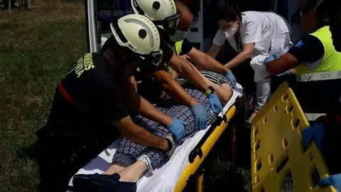 Trasladado al hospital de Cruces un hombre herido tras quedar atrapado bajo un tractor