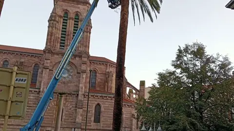 Las palmeras de la iglesia de La Asunción de Torrelavega sufren la plaga de picudo rojo