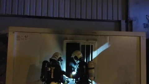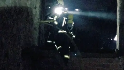 Los bomberos sofocan un incendio en unas instalaciones deportivas sin actividad de Camargo