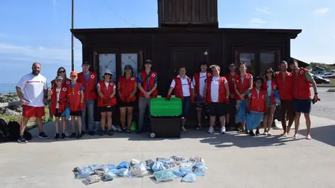 Voluntarios participan junto a Cruz Roja en una jornada de limpieza en la playa de Valdearenas
