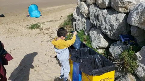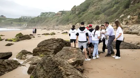 Unos 60 alumnos del IES José Hierro de San Vicente participan en la limpieza de la playa de Oyambre