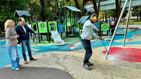 Torrelavega inicia la campaña de limpieza de parques infantiles en el Manuel Barquín