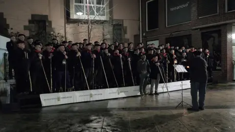 Las rondas infantiles y de adultos de Reinosa cantan Las Marzas bajo el frío
