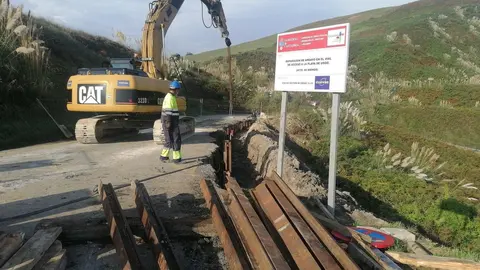 Comienzan los trabajos de reparación del argayo en el acceso a la playa de Usgo en Miengo