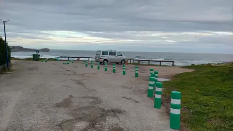 El mirador de la playa de Los Caballos (Miengo) sufre actos vandálicos tras instalarse bolardos