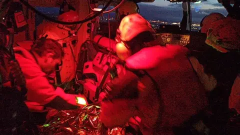 El helicóptero rescata a un ciclista de 47 de Astillero tras caerse en un monte de Villafufre