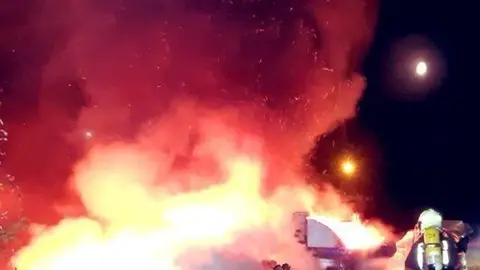 Los Bomberos de Camargo extinguen un incendio de material de residuos de una empresa en Muriedas