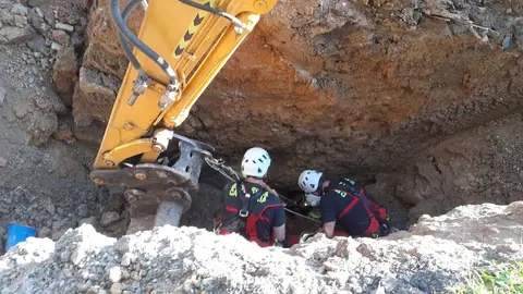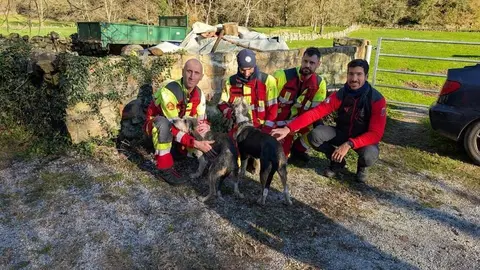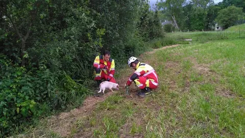 Los bomberos rescatan a dos perros maltratados tirados en un regato en el puerto de la Braguía