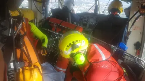El helicóptero del Gobierno rescata a un pescador de 40 años precipitado en Langre