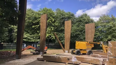 Besaya Comienzan los trabajos de colocación de la cubierta del parque La Robleda en Puente San Miguel Marta Alonso 01/jul/22 11:01