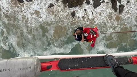 Cantabria Rescatado en helicóptero un hombre al que arrastró la corriente en Noja y que no podía salir de los acantilados Eva Herrera 16/jun/22 16:12
