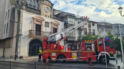 Bomberos retiran elementos de una fachada con riesgo de caída a la vía en Santoña