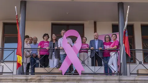 La fachada del Ayuntamiento de Camargo luce una pancarta solidaria con el alzheimer