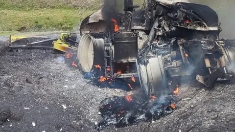 Se incendia un tractor en Los Tornos y un segundo vehículo queda atascado al ir en su ayuda