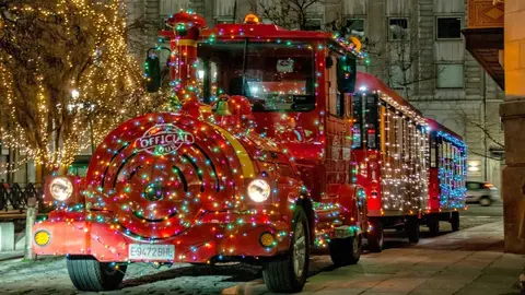 La pista de hielo y el tren 'El grillo' de Torrelavega entran en funcionamiento