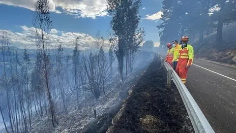 Se mantienen cortados tres kilómetros de la CA-281 por un incendio en Peña Vejo-La Lastra