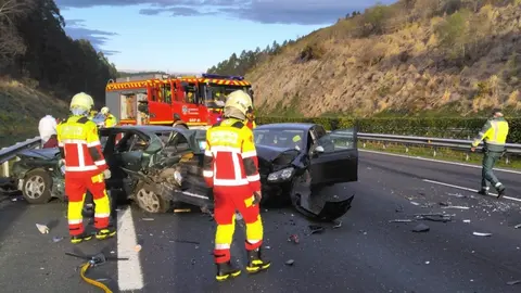 Accidente con varios vehículos implicados en la autovía A67 a su paso por Mompía
