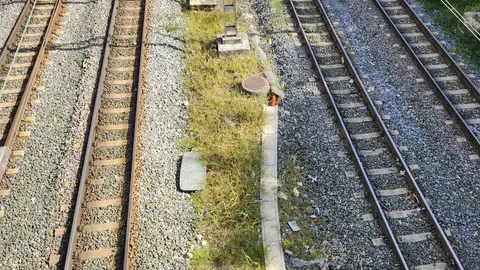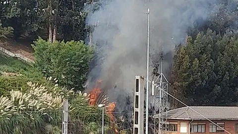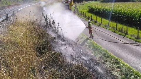 Bomberos sofocan un incendio de vegetación junto a las vías del tren en Gibaja