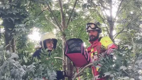 Bomberos rescatan a un gato que permaneció tres días en la copa de un árbol en Villacarriedo