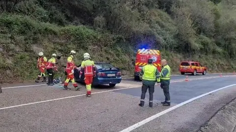 Una furgoneta se sale de la vía tras un accidente en la CA-142, entre Ruda y Vega de Villafufre